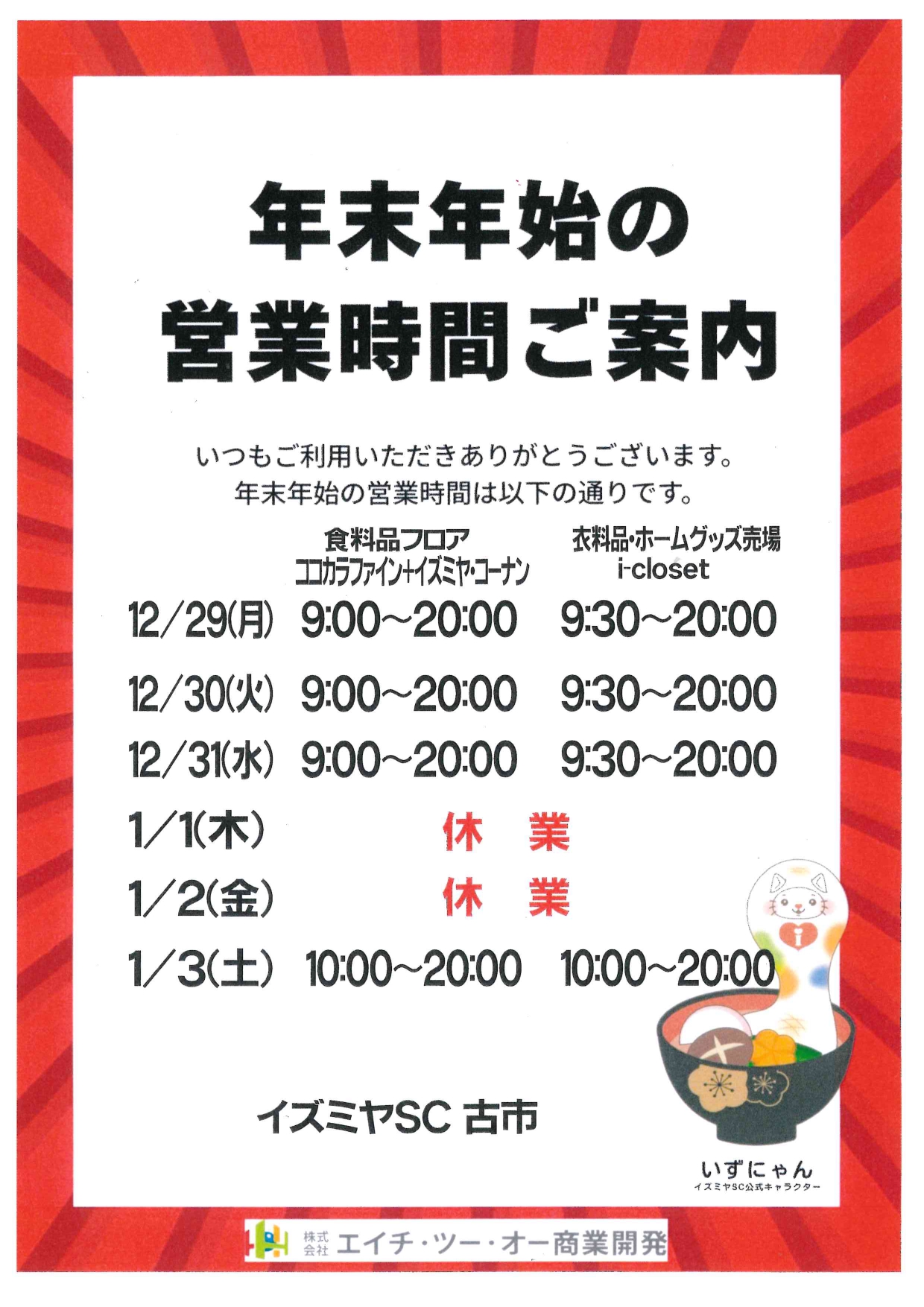 年末年始も変わらぬご愛顧のほどよろしくお願いいたします。