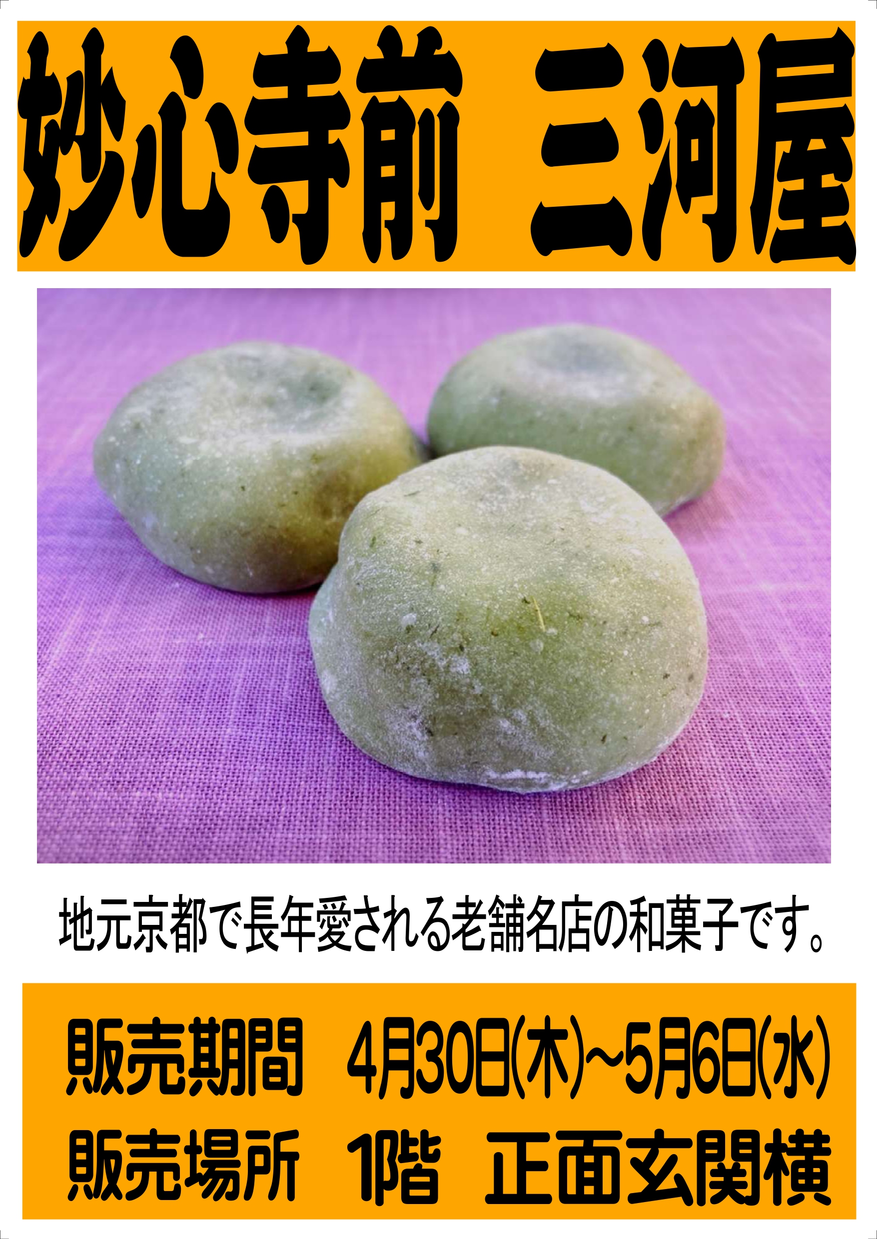 妙心寺前三河屋の和菓子販売会を開催!