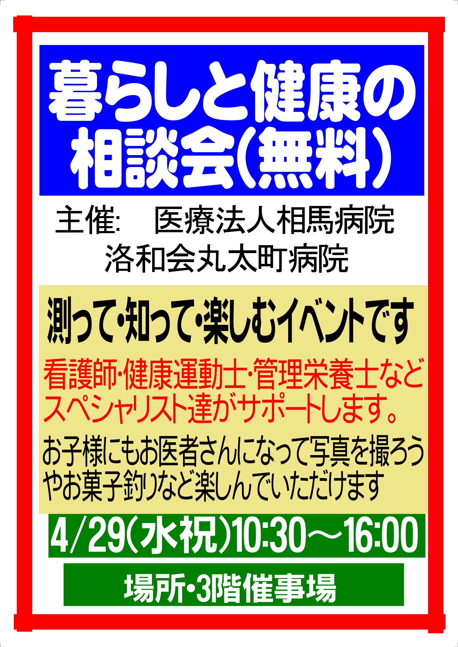 医療法人相馬病院、洛和会丸太町病院 主催の無料相談会です。