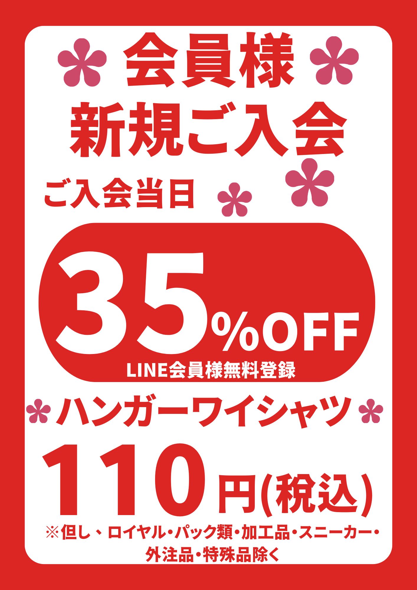 ※ワイシャツ類・加工代・ロイヤル・スニーカー・毛布、こたつ布団以外の布団等・外注