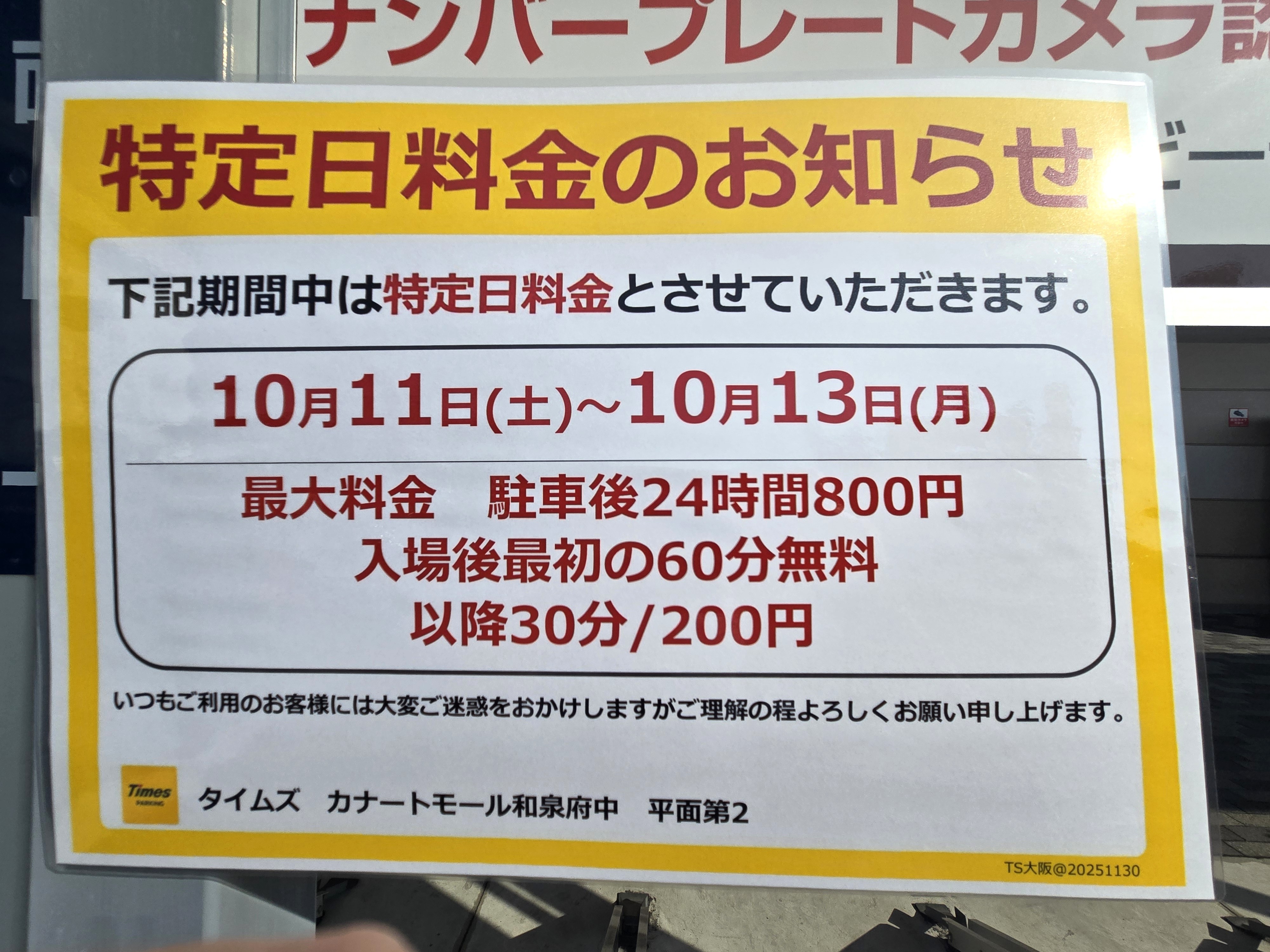カナ-トモール和泉府中では、特定の3日間、