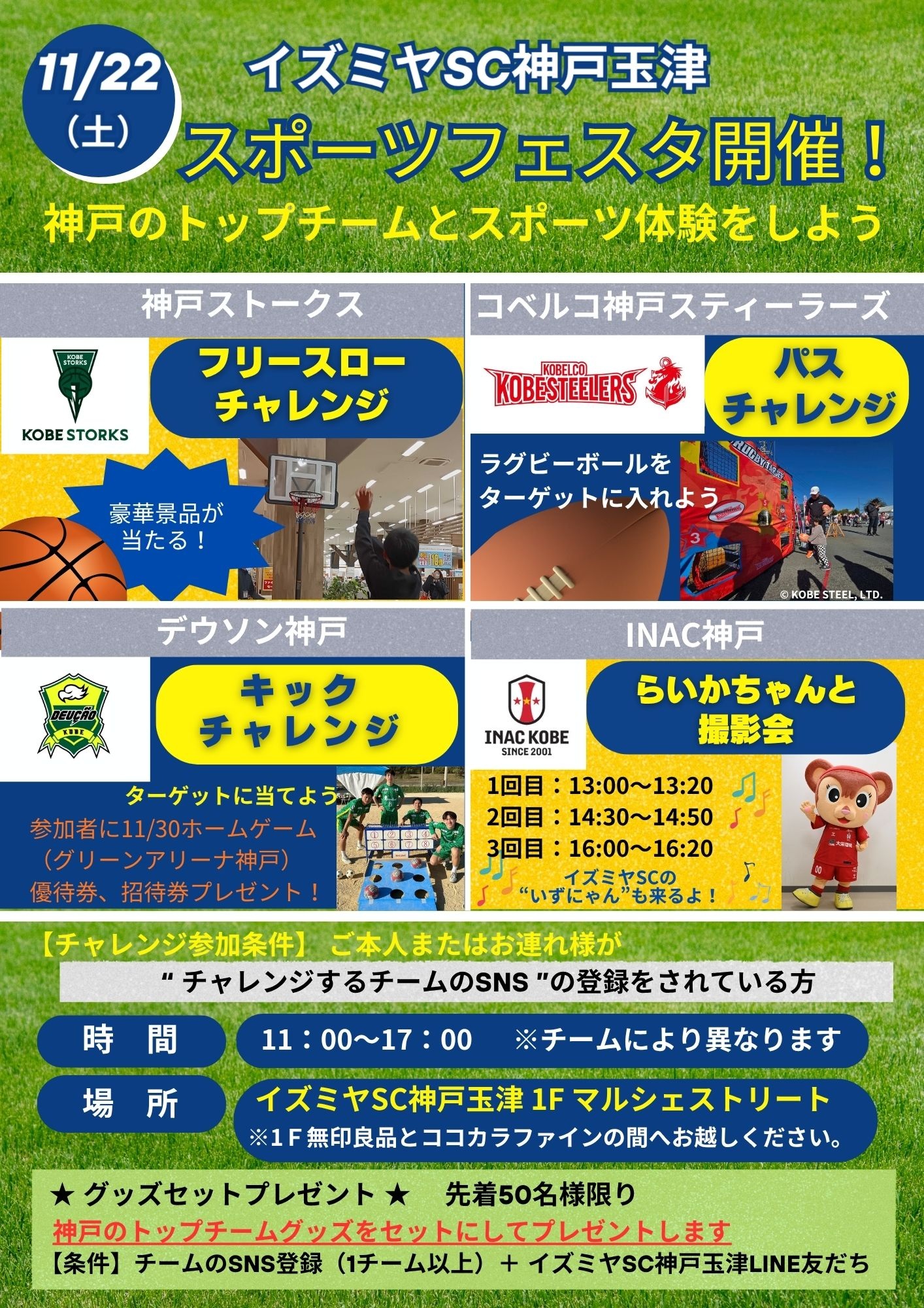 ❝スポーツフェスタ開催❞ イズミヤSC神戸玉津でスポーツ体験をしよう!! 【参加条件】ご本人またはお連れ様が 『チャレンジするチームのSNS』を登録している方 ※当日登録でもOK!
