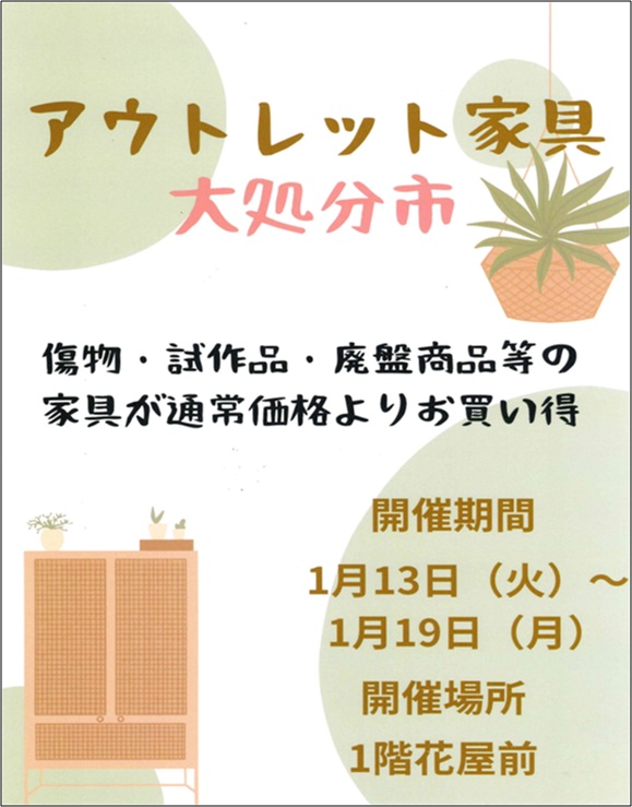<アウトレット家具大処分市> 傷物・試作品・廃盤商品等の家具が通常価格よりお買い得😮‼️