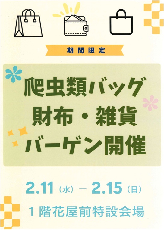 爬虫類バッグ・財布・雑貨商品バーゲン価格で販売‼️