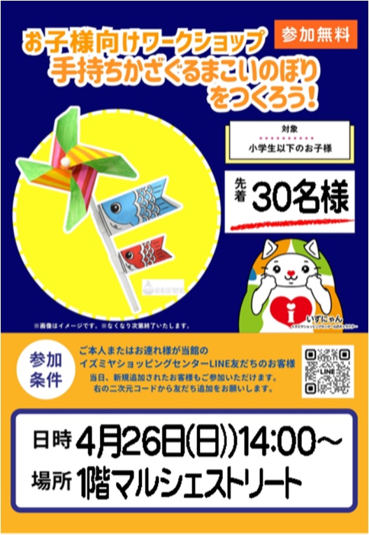 お子様向けワークショップ 「手持ちかざぐるまこいのぼりをつくろう🎏」 こどもの日までにこいのぼりを作ってかざろう🎶