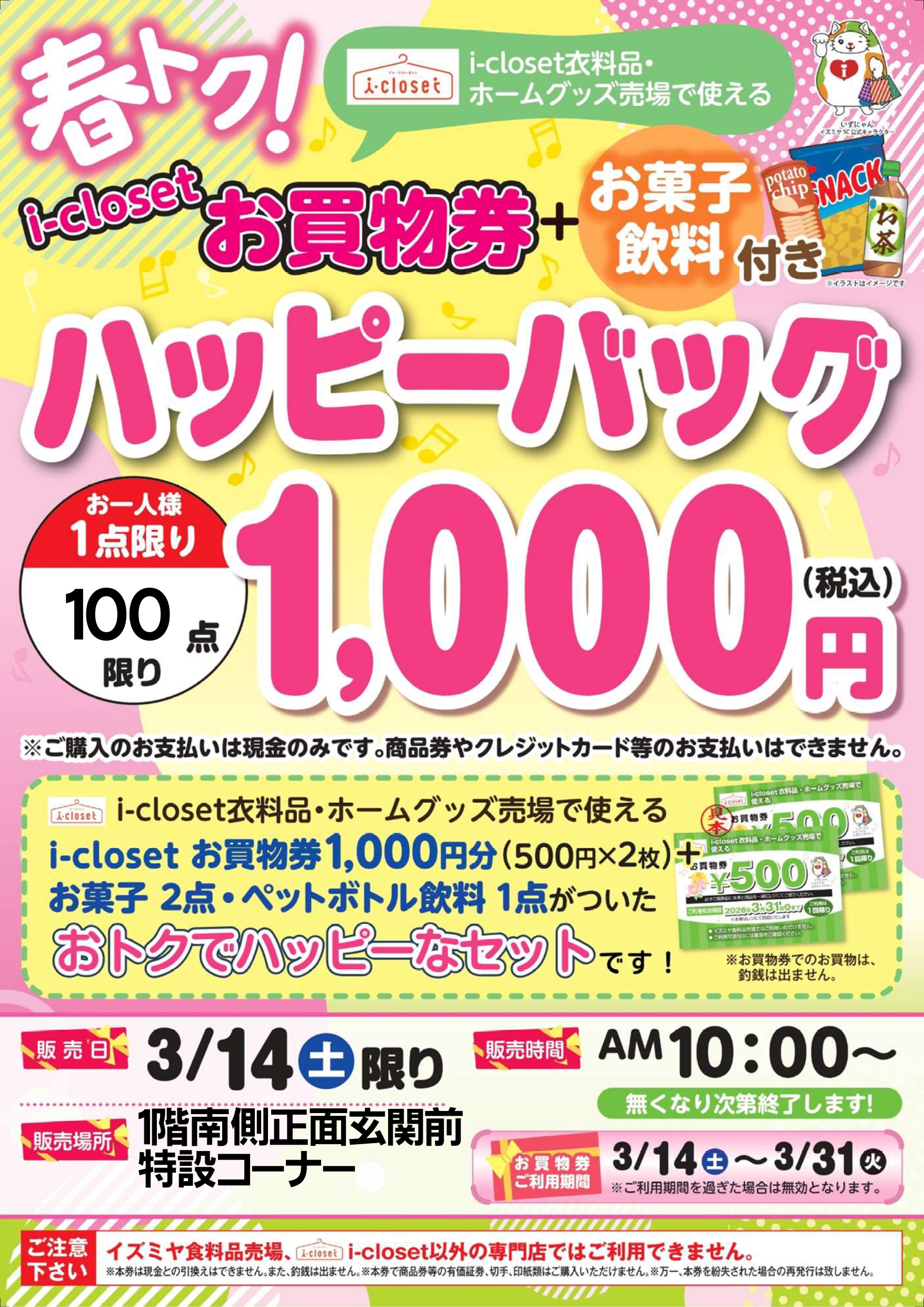 2階i-closet衣料品・ホームグッズ売場で使える
