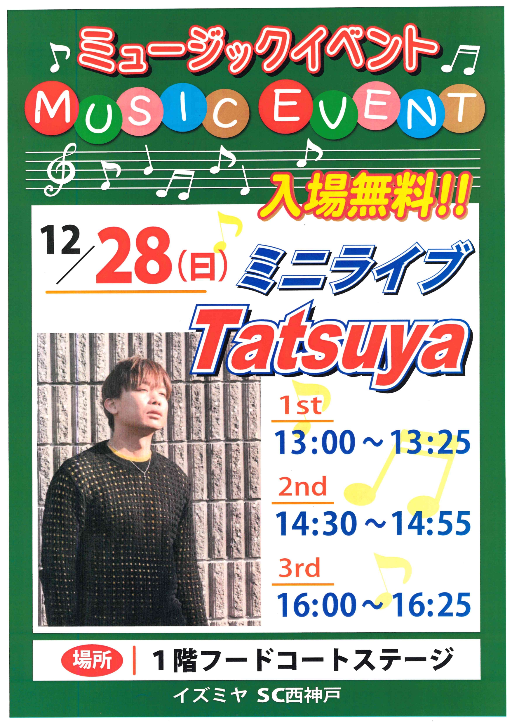 1階フードコートステージにて、Tatsuyaさんのミニライブを開催いたします🎵【観覧無料】