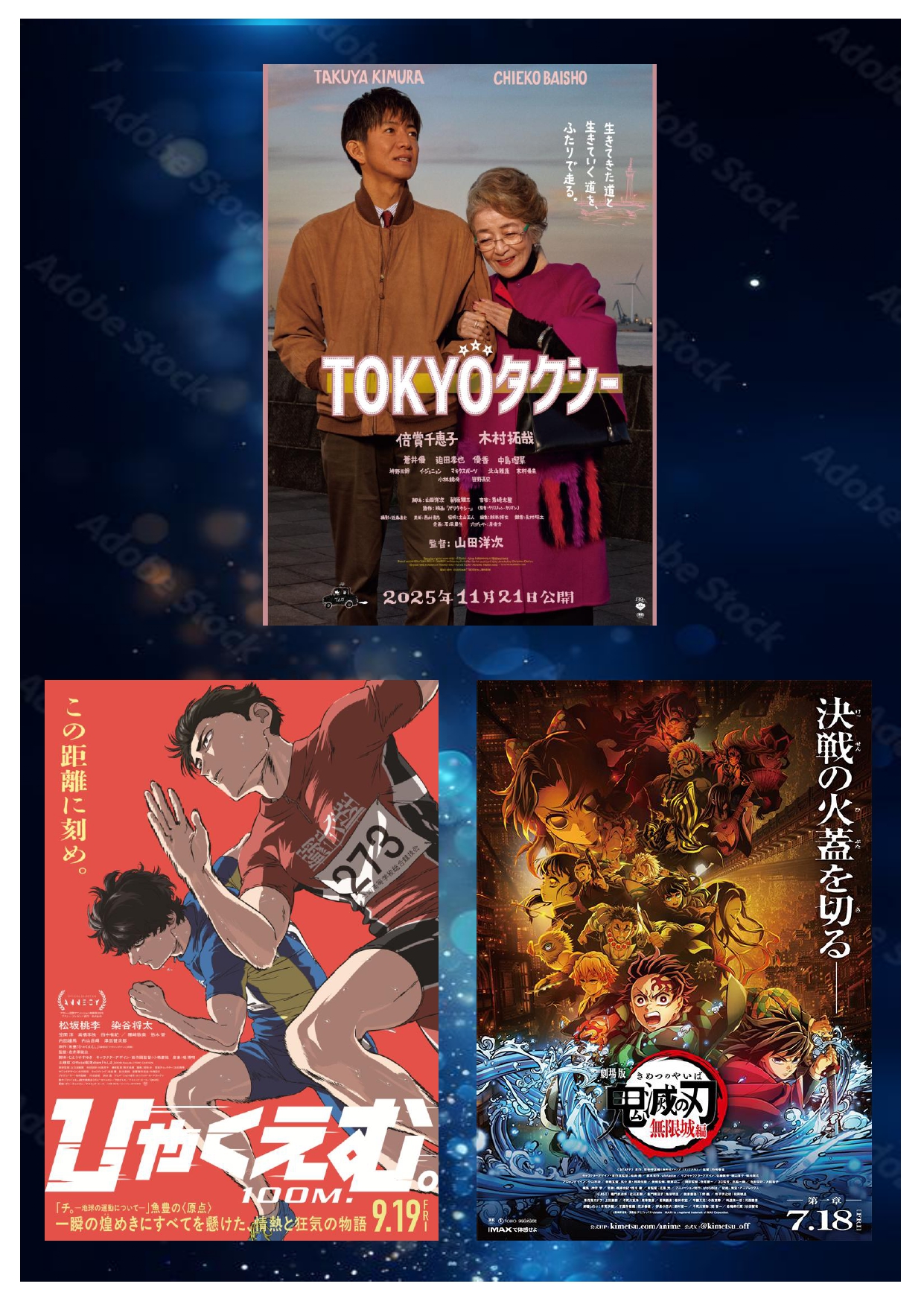 「TOKYOタクシー」と「ひゃくえむ。」と「劇場版 鬼滅の刃 無限城編 第一章 猗窩座再来」を順番に上映します♪✨