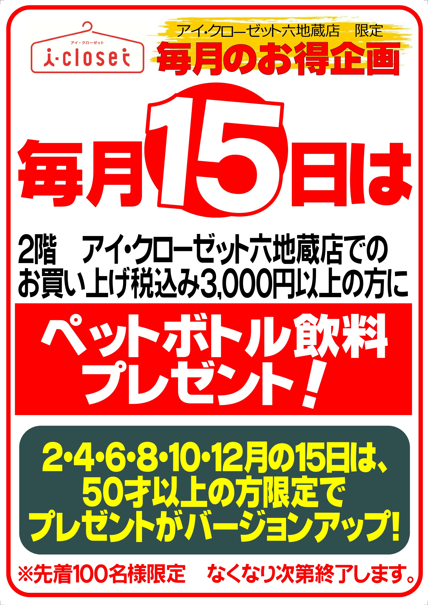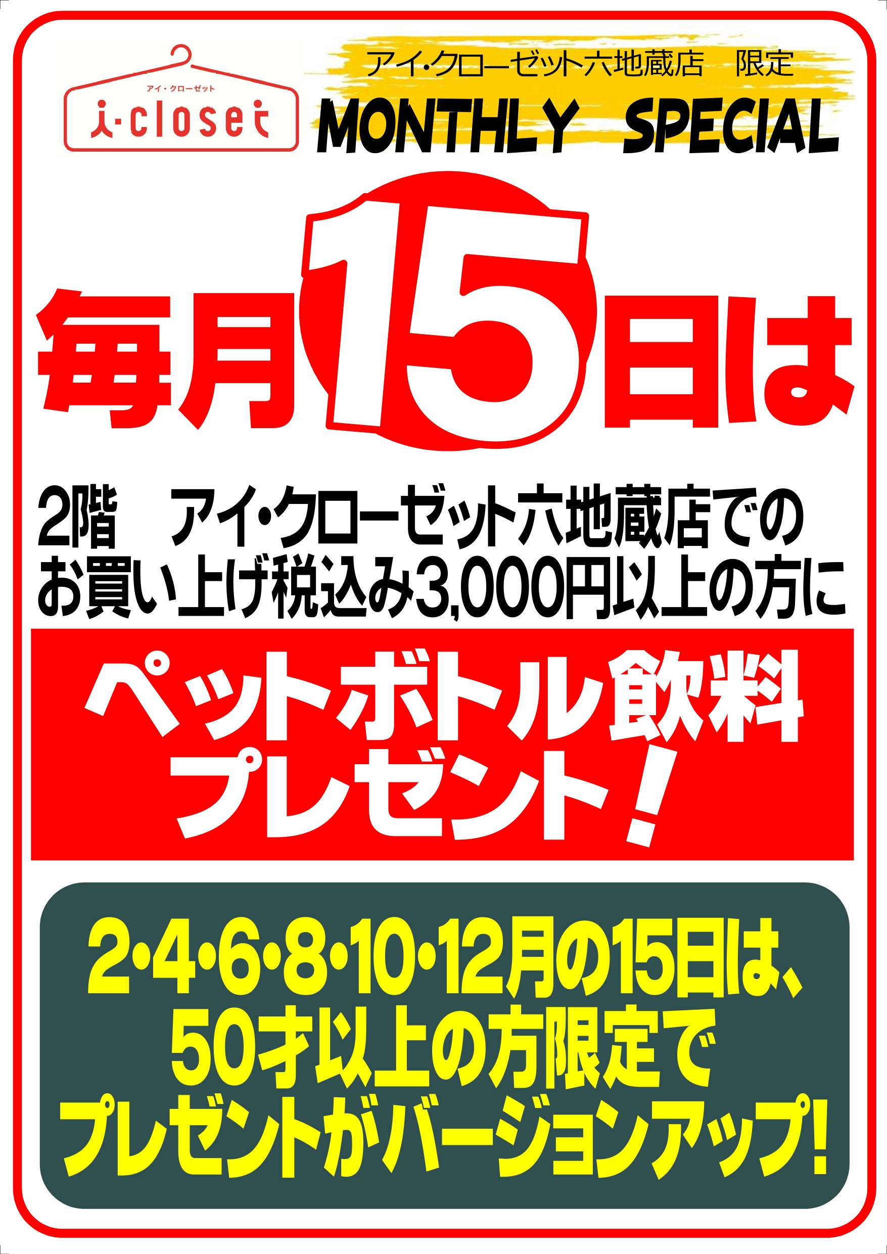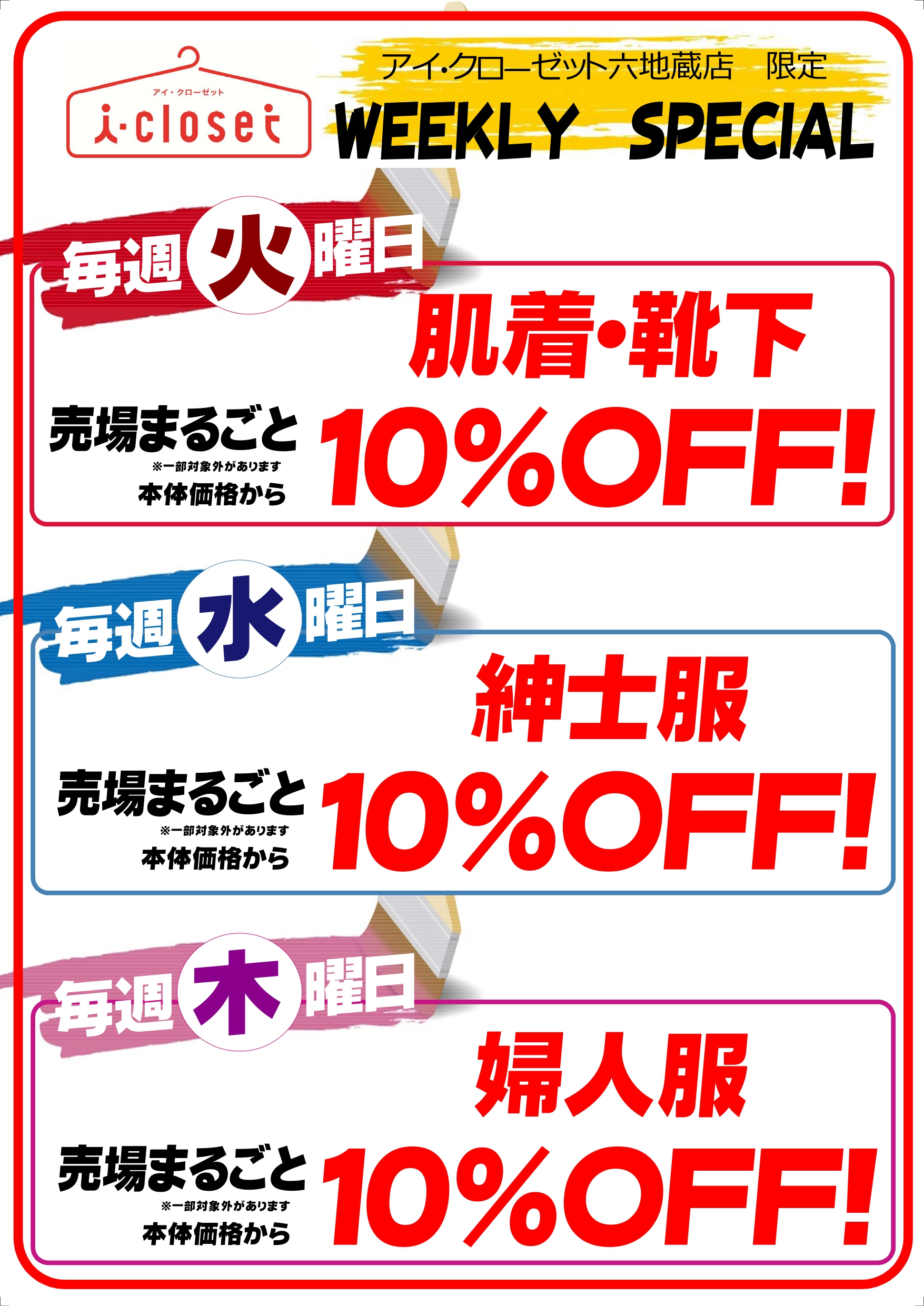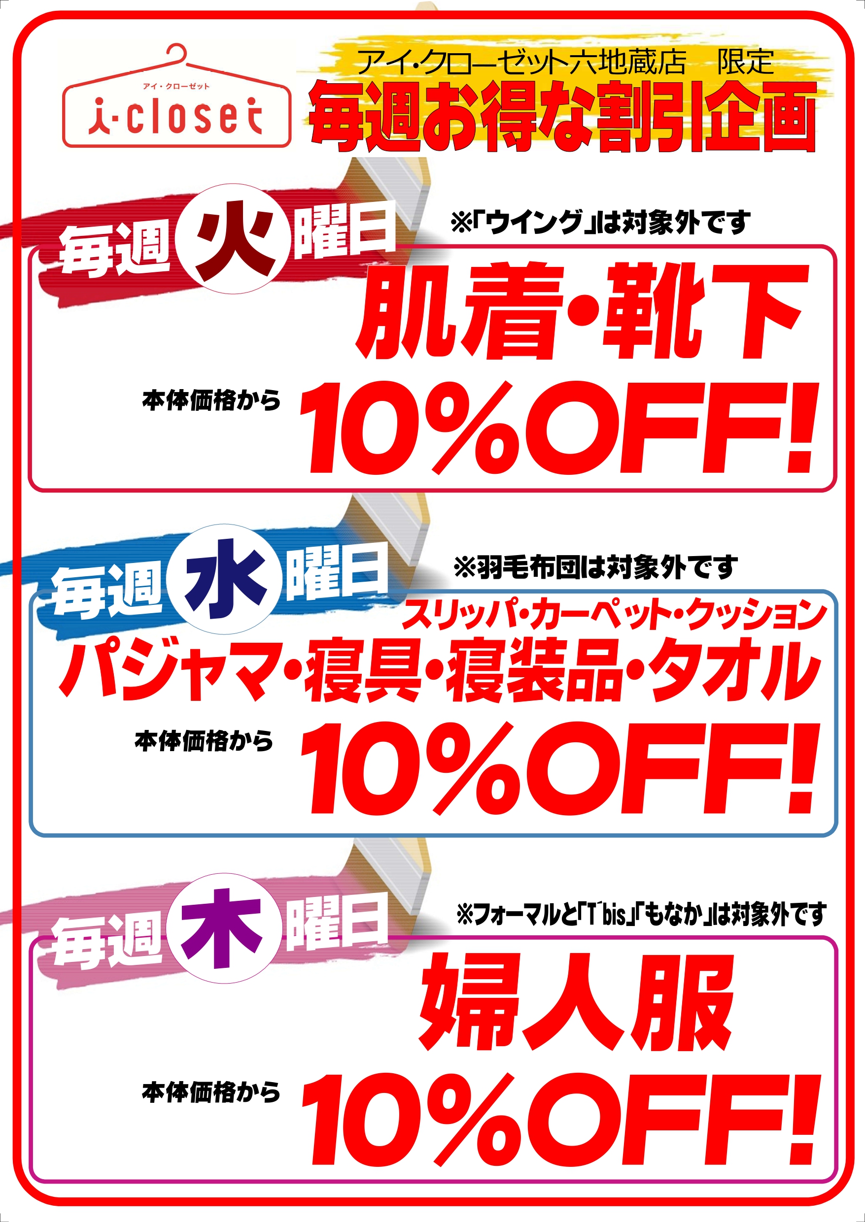毎月第2土日はアイ・クローゼットでお得にお買い物!