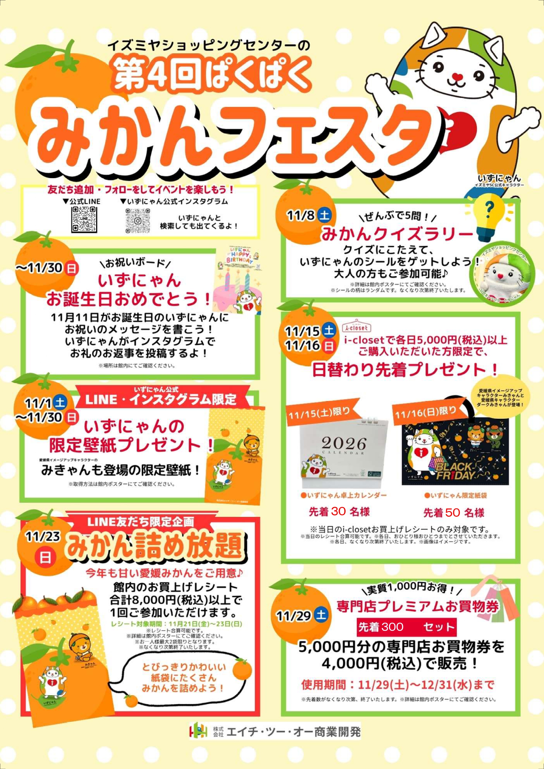 11/8㊏ いずにゃんのシールがもらえる「みかんクイズラリー」