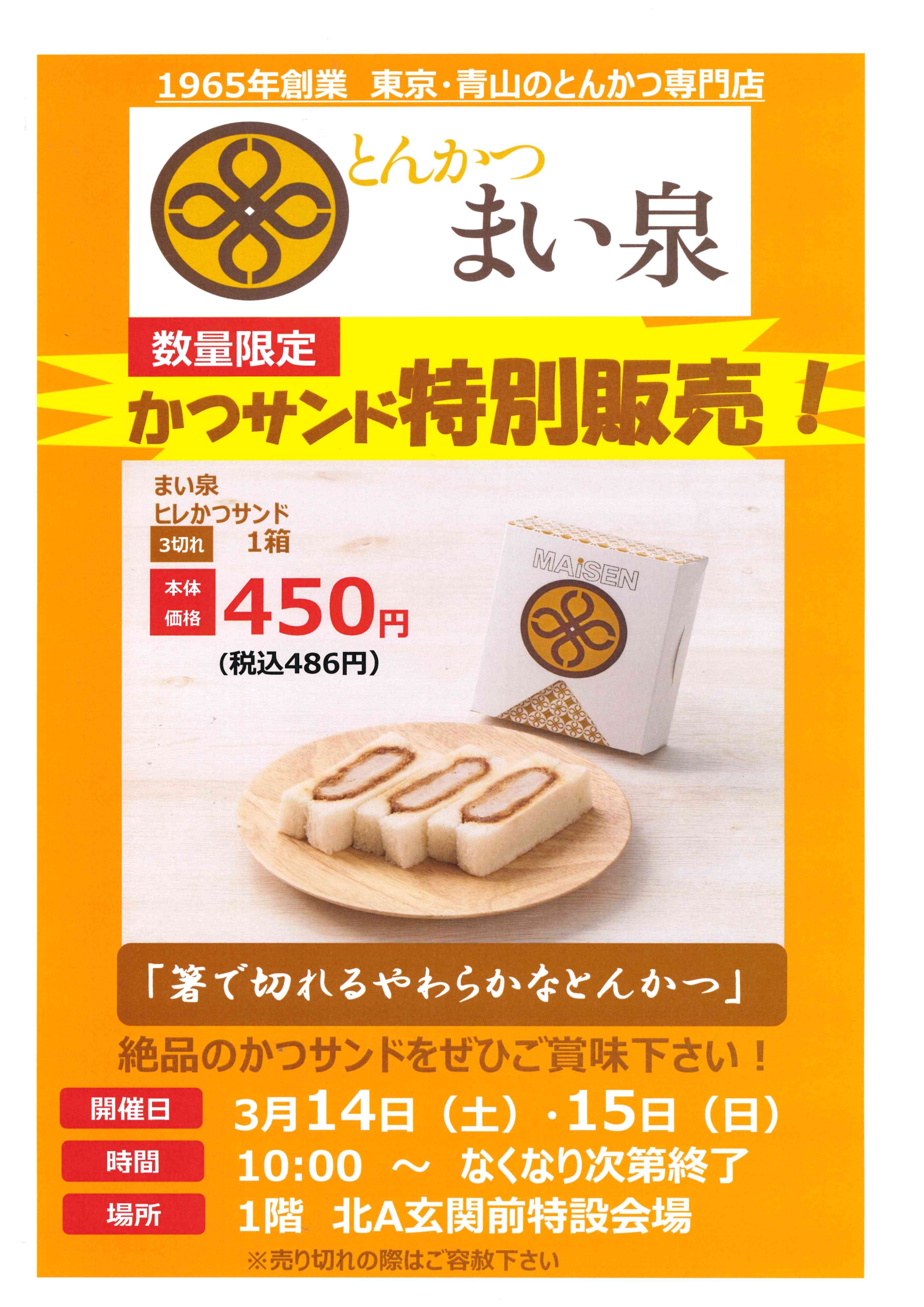 まい泉のかつサンド特別販売のお知らせ