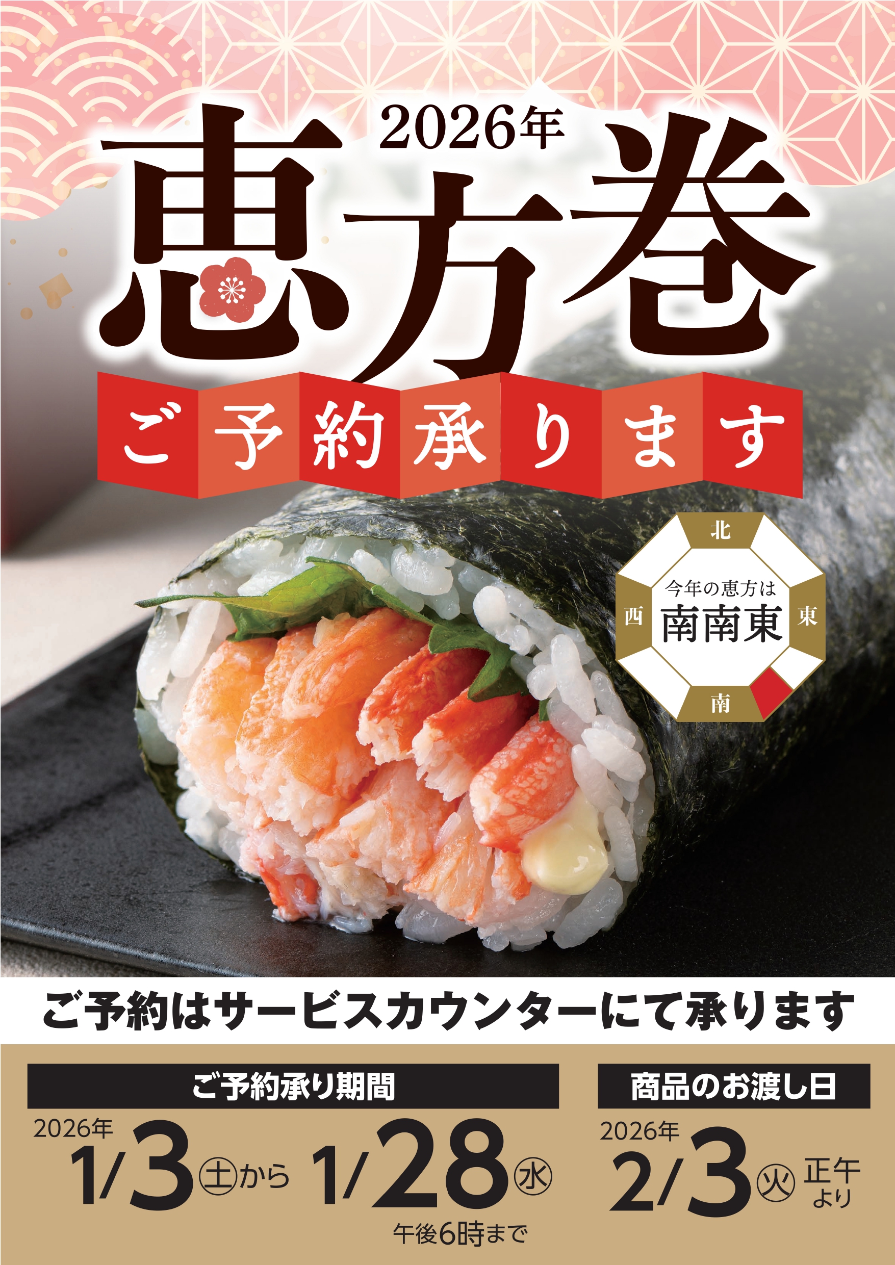 1階食品サービスカウンターにて恵方巻のご予約を承ります!