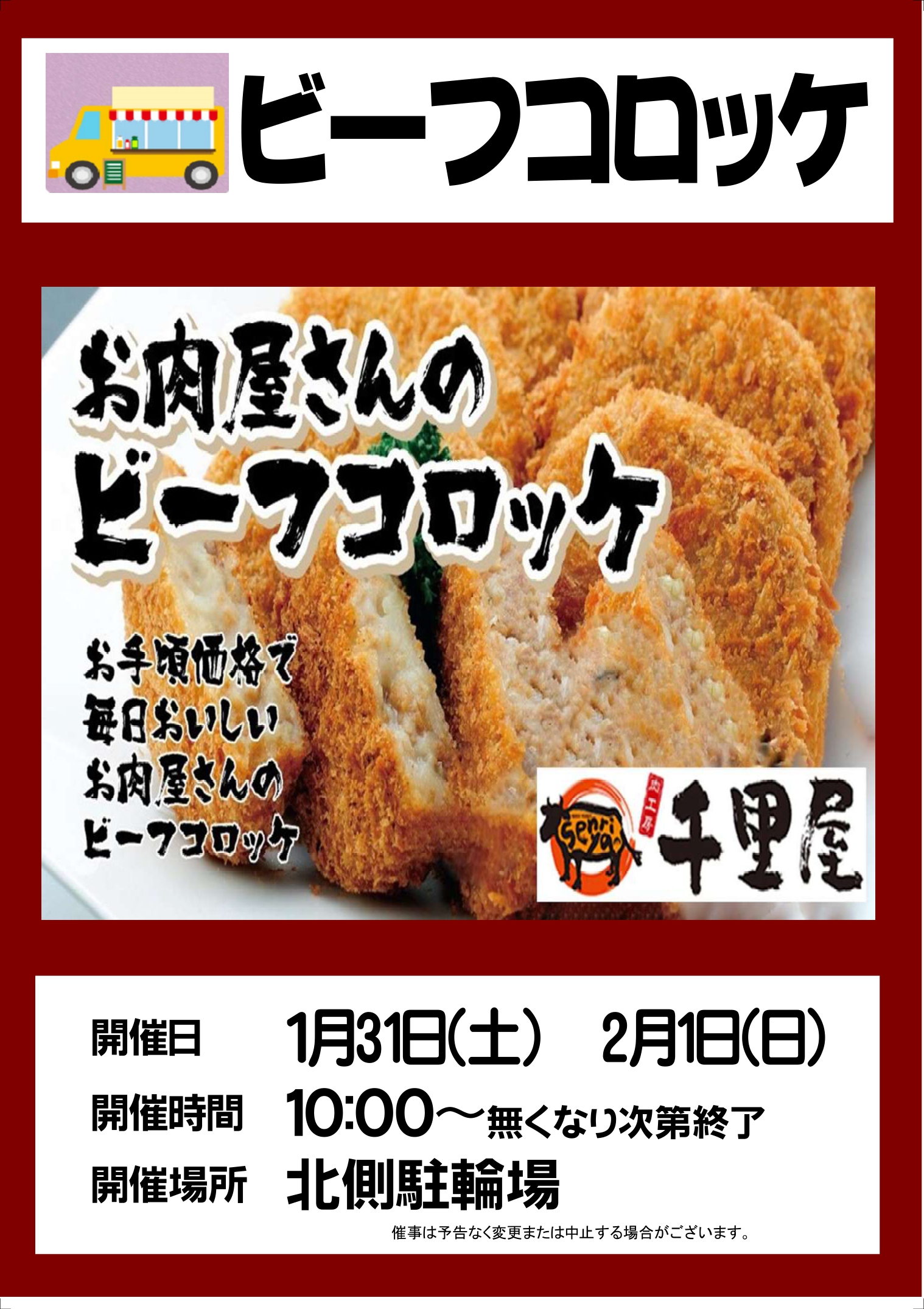 お肉屋さんのビーフコロッケ『千里屋』のキッチンカーが出店します!