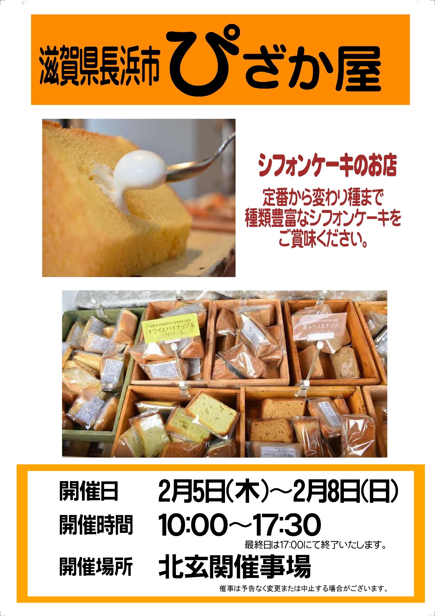 人気のシフォンケーキのお店『ぴざか屋』が出店します!