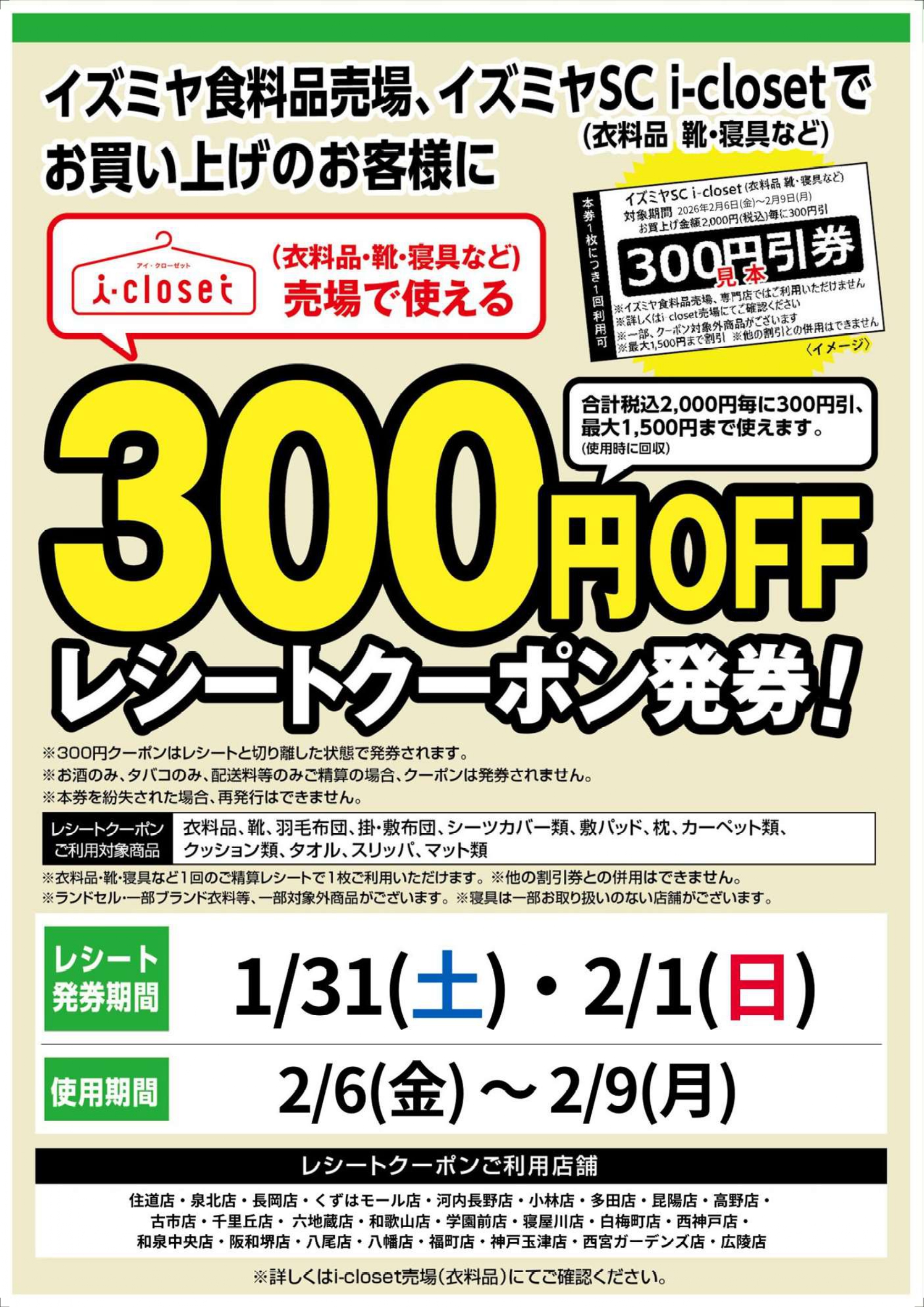 2月6日(金)~2月9日(月)に2階i-closetで使える