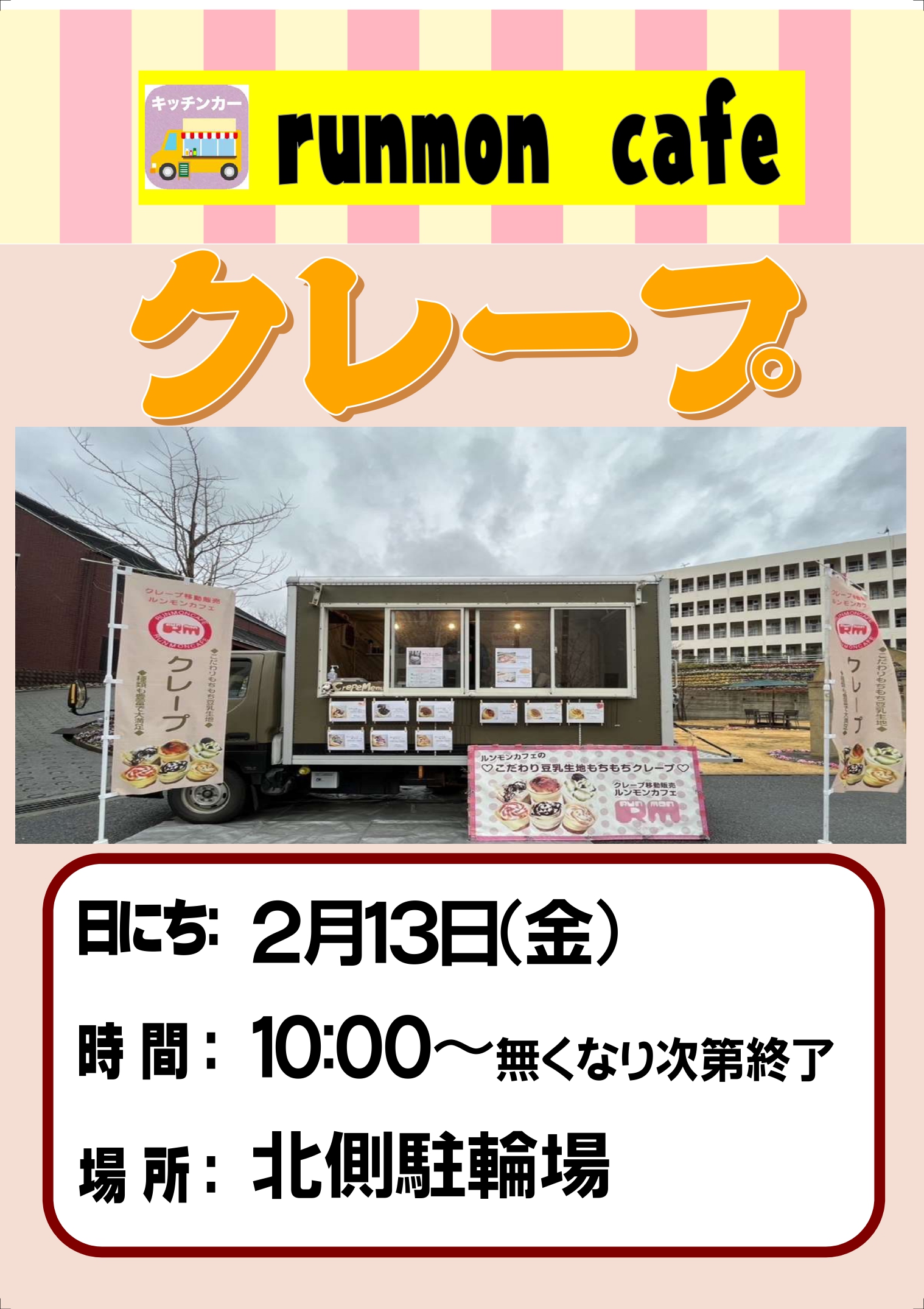 『runmon café(ルンモンカフェ)』の「クレープキッチンカー」が出店します!
