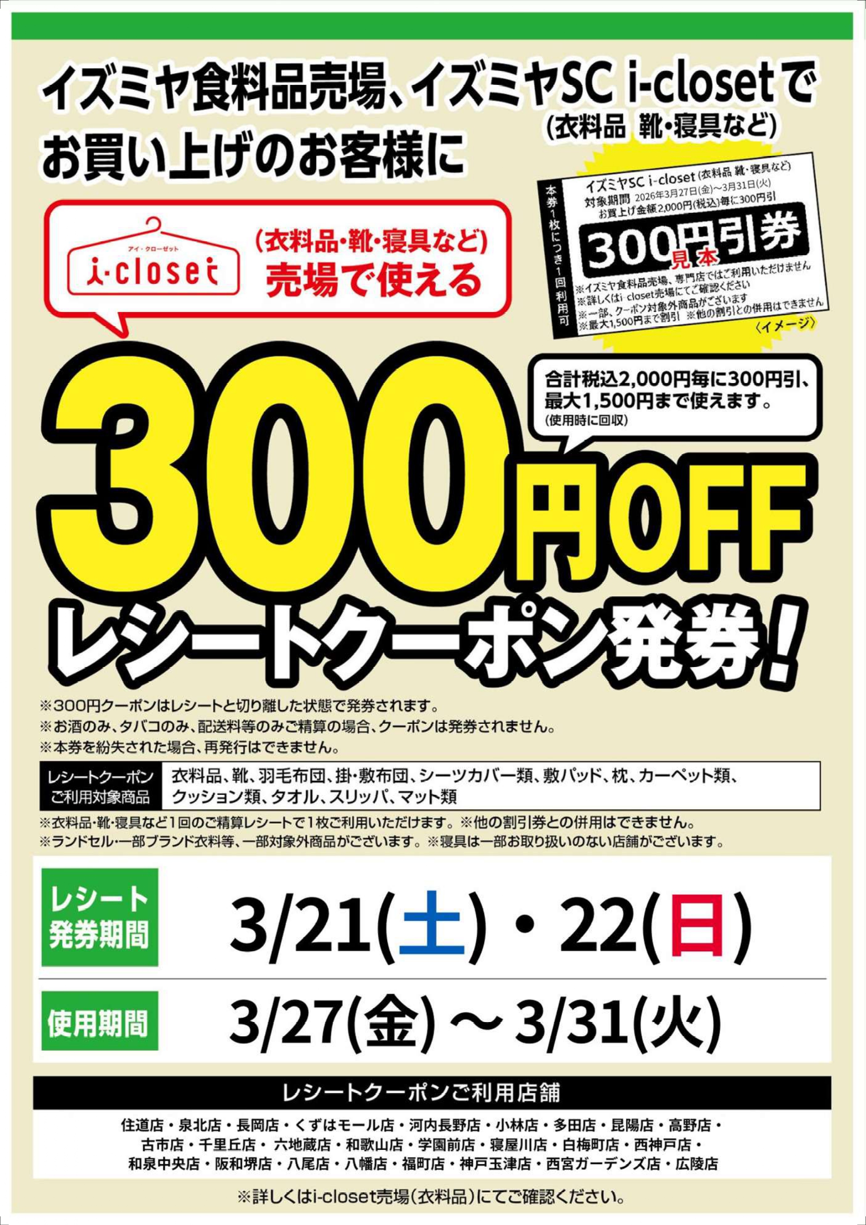 3月27日(金)~3月31日(火)に2階i-closetで使える