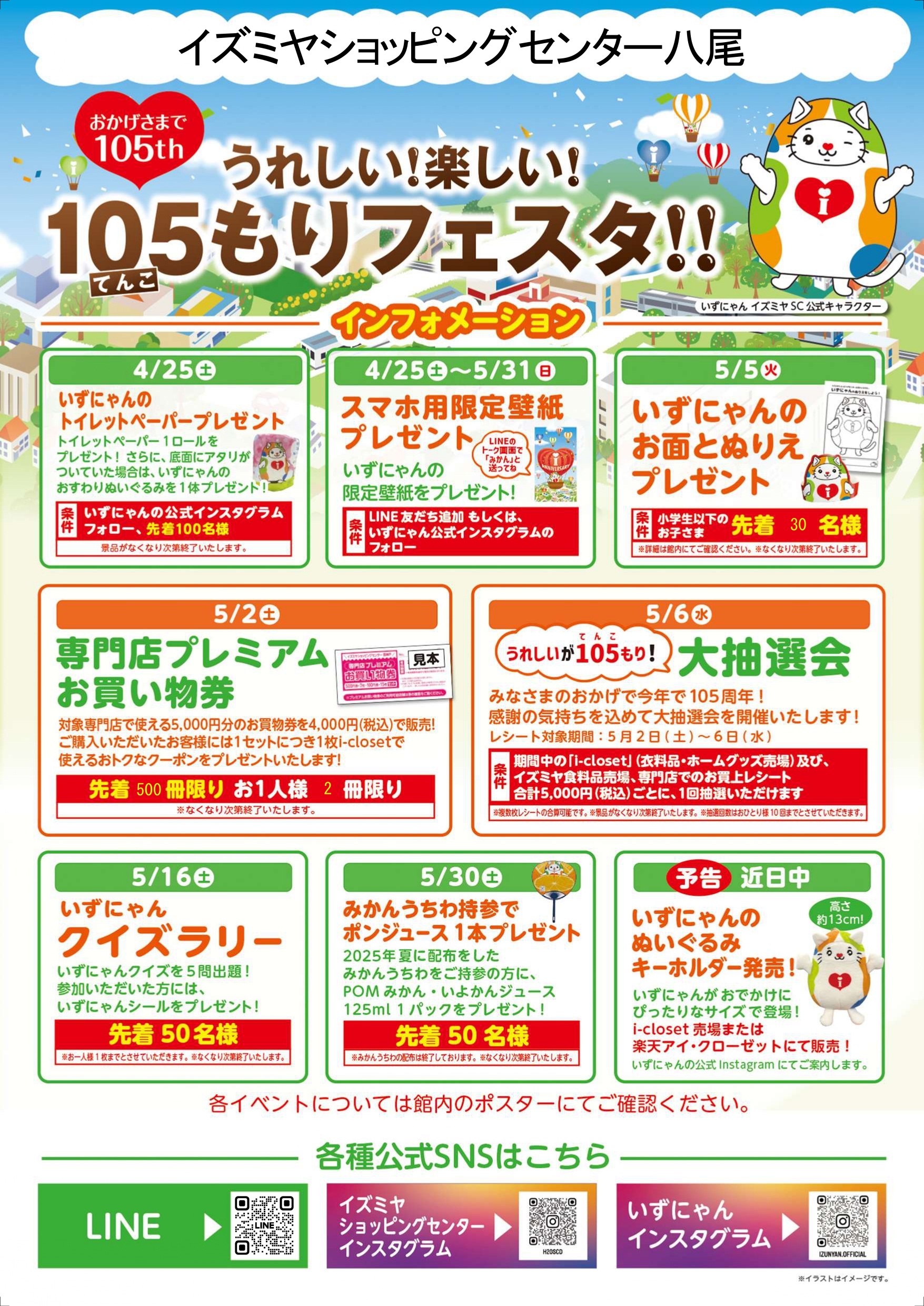 おかげさまで105th うれしい楽しい105(てんこ)もりフェスタを開催いたします。